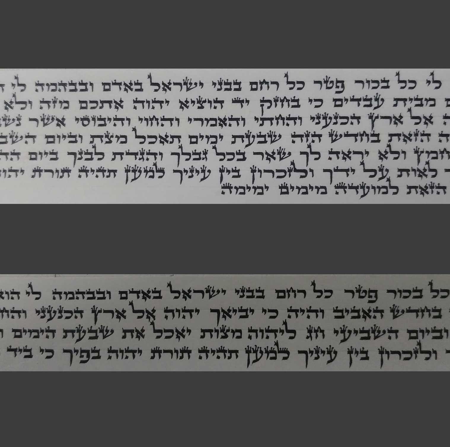 Chaque lettre est tracée avec soin, dans la pure continuité de la tradition des grands Sofrim.
